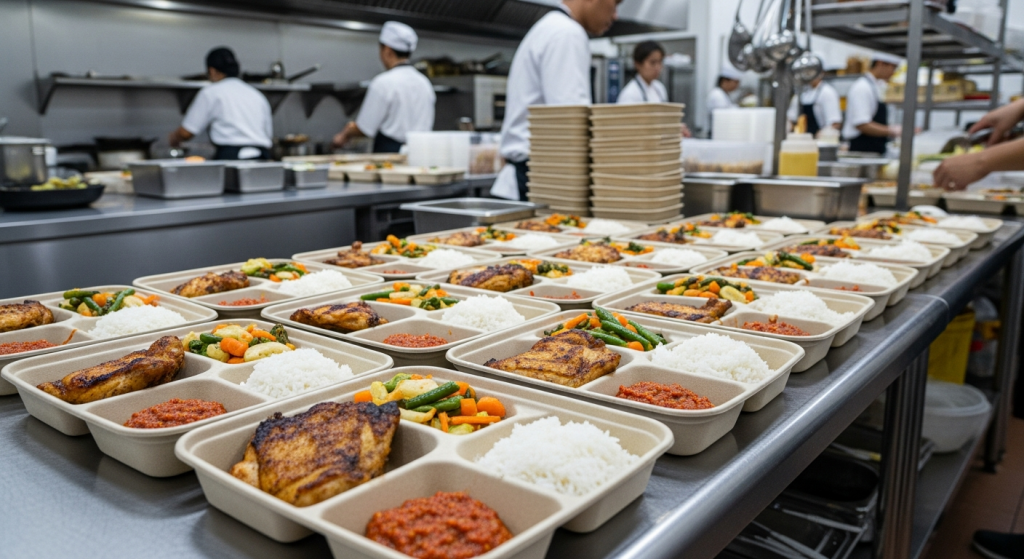 - Nasi Box dan Nasi Kotak – Praktis dan higienis, cocok untuk kebutuhan konsumsi massal.